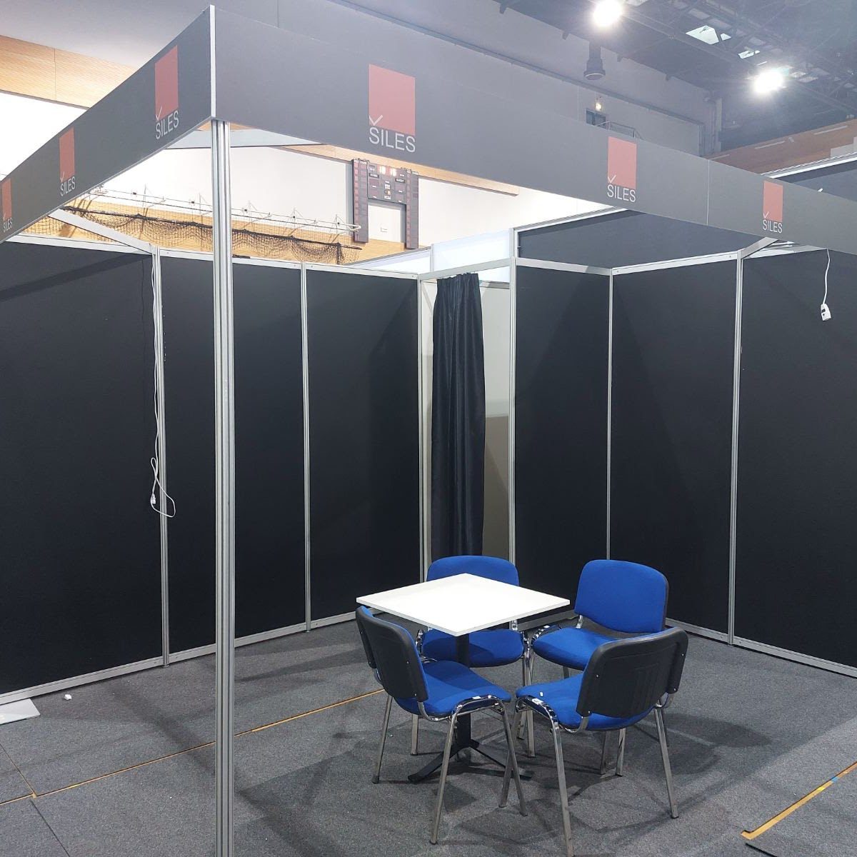 U sklopu štanda mogu se montirati i dodatni prostori poput skladišta s vratima, garderobe sa zavjesom ili većih spremišta, ovisno o potrebama izlagača.